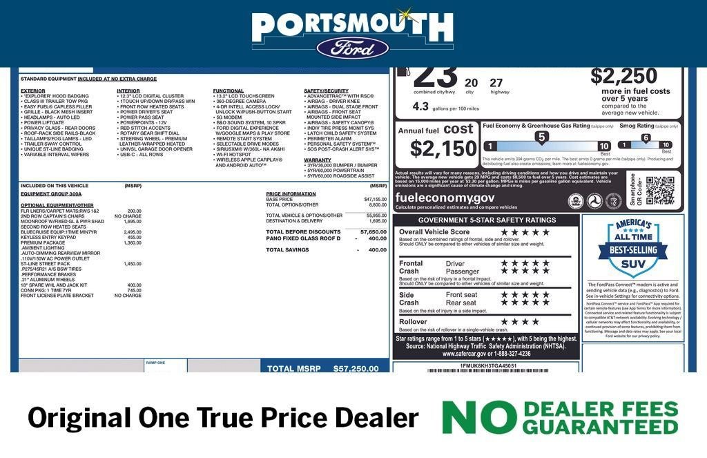 WHY BUY FROM PORTSMOUTH FORD -NO DEALER FEES GUARANTEED -ORIGINAL ONE PRICE DEALER FOR 30 YEARS -PORTSMOUTH FORD ADVANTAGE PROGRAM FREE 1 YEAR -LARGEST INVENTORY IN NEW ENGLAND. Price may include all applicable rebates, incentives, and special offers. See dealer for details.$3500 - Retail Customer Cash. Exp. 04/30/2026