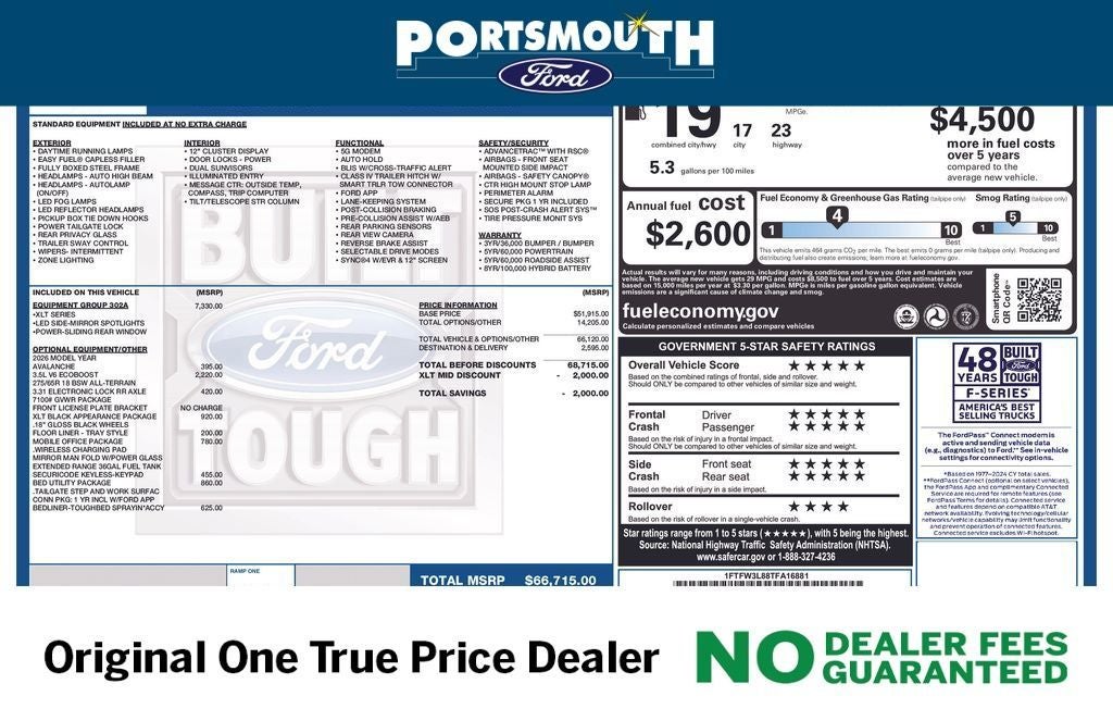 WHY BUY FROM PORTSMOUTH FORD -NO DEALER FEES GUARANTEED -ORIGINAL ONE PRICE DEALER FOR 30 YEARS -PORTSMOUTH FORD ADVANTAGE PROGRAM FREE 1 YEAR -LARGEST INVENTORY IN NEW ENGLAND.