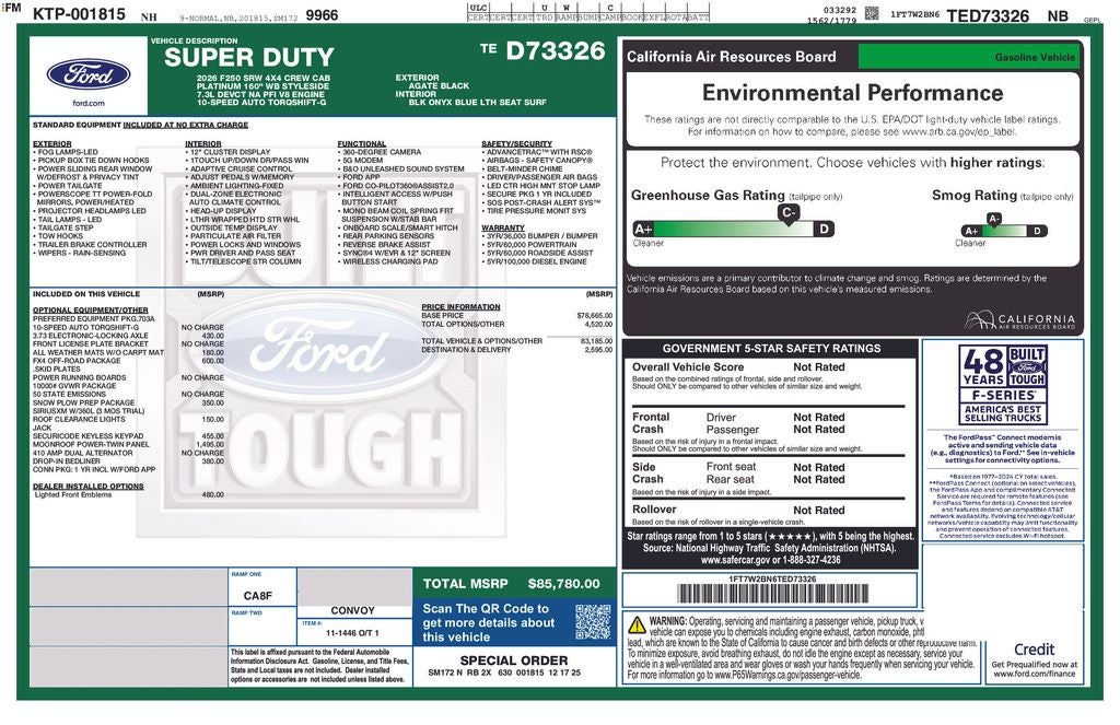 2026 Ford F-250SD Platinum Agate Black Metallic 7.3L 8-Cylinder PFI 4D Crew Cab