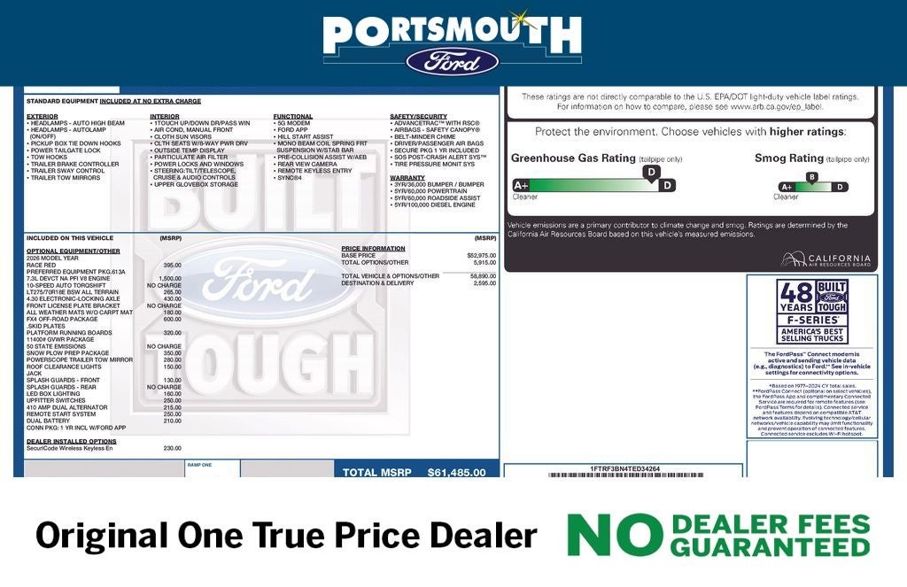 WHY BUY FROM PORTSMOUTH FORD -NO DEALER FEES GUARANTEED -ORIGINAL ONE PRICE DEALER FOR 30 YEARS -PORTSMOUTH FORD ADVANTAGE PROGRAM FREE 1 YEAR -LARGEST INVENTORY IN NEW ENGLAND. Price may include all applicable rebates, incentives, and special offers. See dealer for details.$3500 - Retail Customer Cash. Exp. 03/31/2026