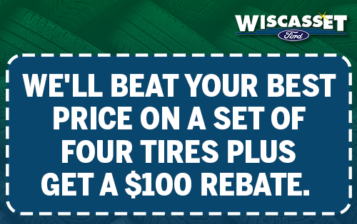 *Valid on dealer-installed retail or fleet eligible retail purchases only. Requires presentation of competitor’s current price ad/offer on exact tire sold by dealership within 30 days after purchase. For online quotes, guarantee applies only to new tires sold on retailer websites. Excludes tires sold by third parties on marketplace sites and any resellers. See a participating U.S. dealership for details. Ford reserves the right to change, modify, or discontinue this program at any time. **Dealer-installed purchase only. Limit one (1) rebate offer per retail customer vehicle and limit of 15 vehicles per fleet eligible customer. $100 tire rebate or 22,000 Ford Rewards bonus Points on a set of four Goodyear®, Cooper®, Hankook, Bridgestone, Firestone, Pirelli, Yokohama®, Toyo®, and Nitto® tires. $50 tire rebate and $50 service allowance or 22,000 Ford Rewards bonus Points on Michelin and BFGoodrich® tires. Toyo medium/commercial truck and Motorsport patterns are excluded. Must have an activated Ford Rewards account (formerly known as FordPass® Rewards) within 60 days of qualifying activity to receive Ford Rewards Points. Points are not redeemable for cash and have no monetary value. Point earning and redemption values are approximate and vary by products and services redeemed. See the Ford Rewards Program Terms at FordRewards.com for information regarding expiration, redemption, forfeiture, and other limitations on Ford Rewards Points. Points will be awarded within eight weeks of rebate submission. Offer valid 4/1/26 to 4/30/26. Submit rebate by 5/31/26 online at Ford.com/service-rebates or by mail-in rebate form; rebate payment will be sent by mail. See a participating U.S. dealership for vehicle applications and offer details through 4/30/26.