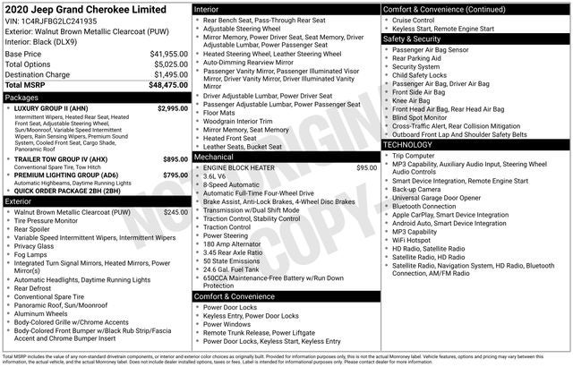 **NO DEALER FEES**, 4WD. 2020 Jeep Grand Cherokee Limited Clean CARFAX. Walnut Brown Metallic Clearcoat 2020 Jeep Grand Cherokee Limited 4WD 8-Speed Automatic 3.6L V6 24V VVT